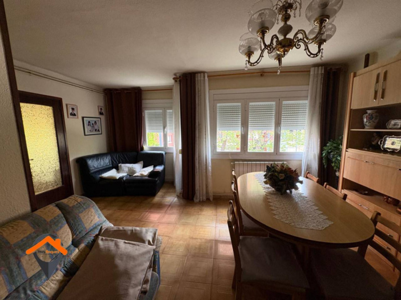 Este acogedor piso de 84 m² útiles, ubicado en la primera planta de un edificio con ascensor, ofrece una distribución funcional y luminosa. Con una habitación doble y una individual, dispone de un baño completo y un comedor espacioso. La vivienda, con más de 50 años de antigüedad, se ha mantenido en buen estado, presentando suelos de gres y carpintería interior de embero que aportan calidez al ambiente. La calefacción es de gas natural, garantizando confort durante todo el año, y cuenta con puerta blindada para mayor seguridad.