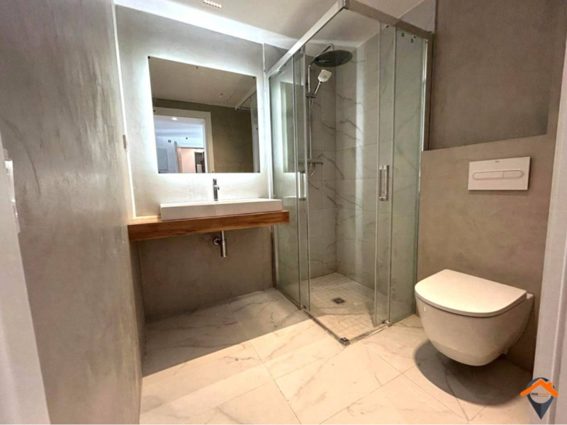 Aluminio lacado con rotura de puente térmico, persianas mallorquinas, puertas lacadas en blanco, parquet laminado en roble natural, baños revestidos con gres porcelánico y duchas con mampara, cocinas equipadas con mobiliario alto y bajo y electrodomésticos de primeras marcas, calefacción y aire acondicionado por bomba calor aerotermia, videoportero Wi-Fi, iluminación LED, entre más detalles tanto de las viviendas como del edificio.