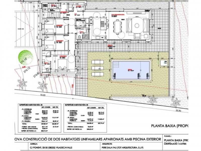 Construida sobre una parcela de 840 m², esta casa se distribuye en dos plantas: planta sótano y planta baja.